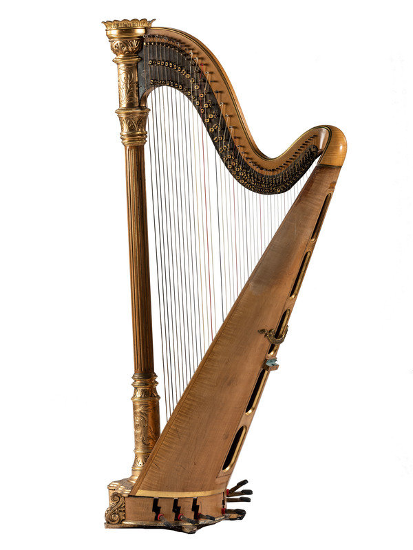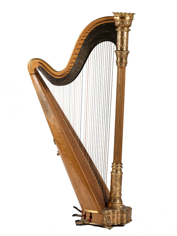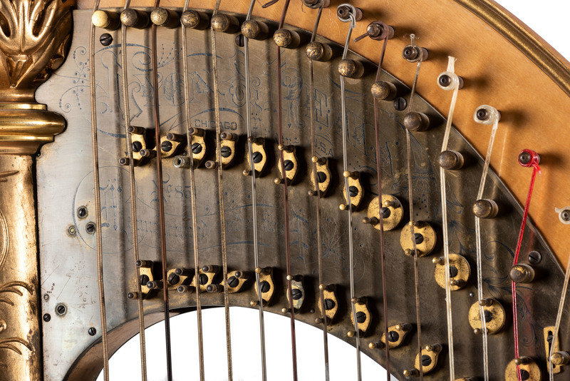A Lyon & Healy Carved and Parcel Gilt Wood Harp