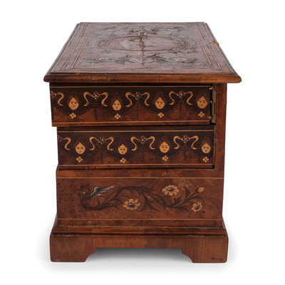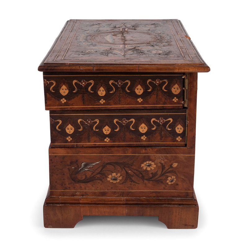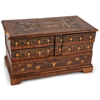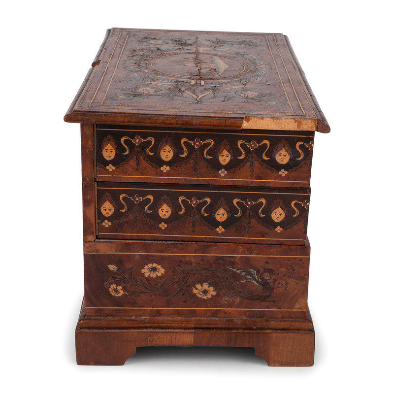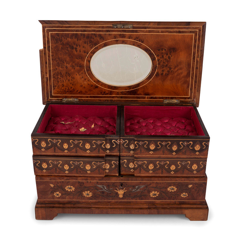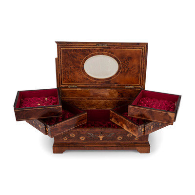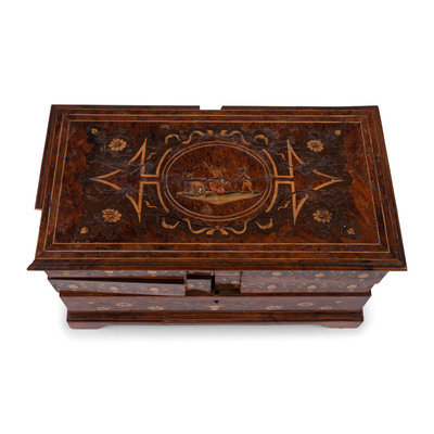 A Continental Marquetry Jewelry Casket