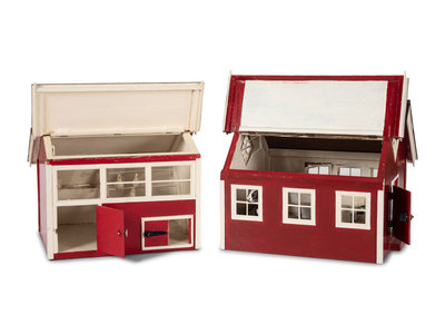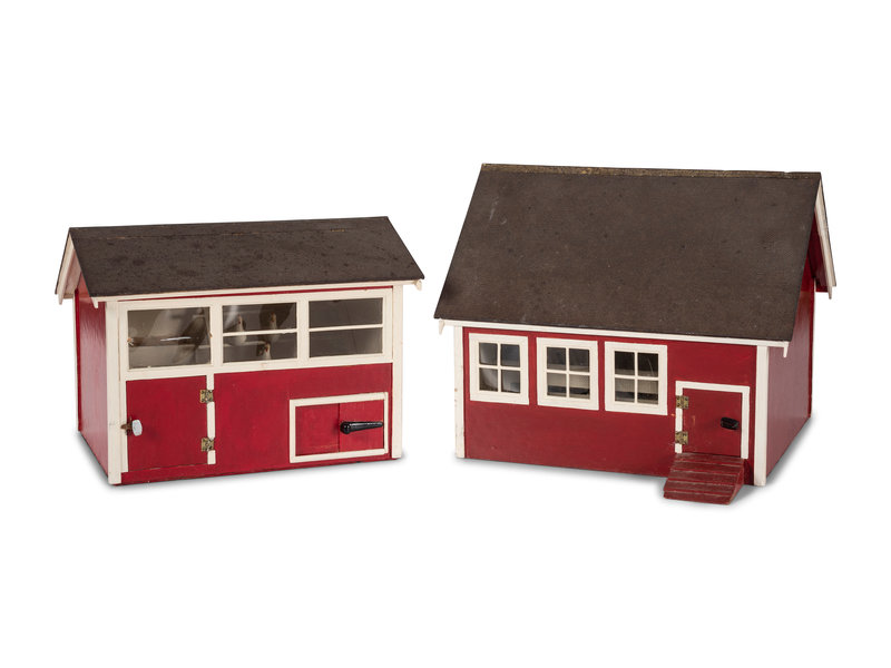 A Painted Wood Toy Barn and Chicken House