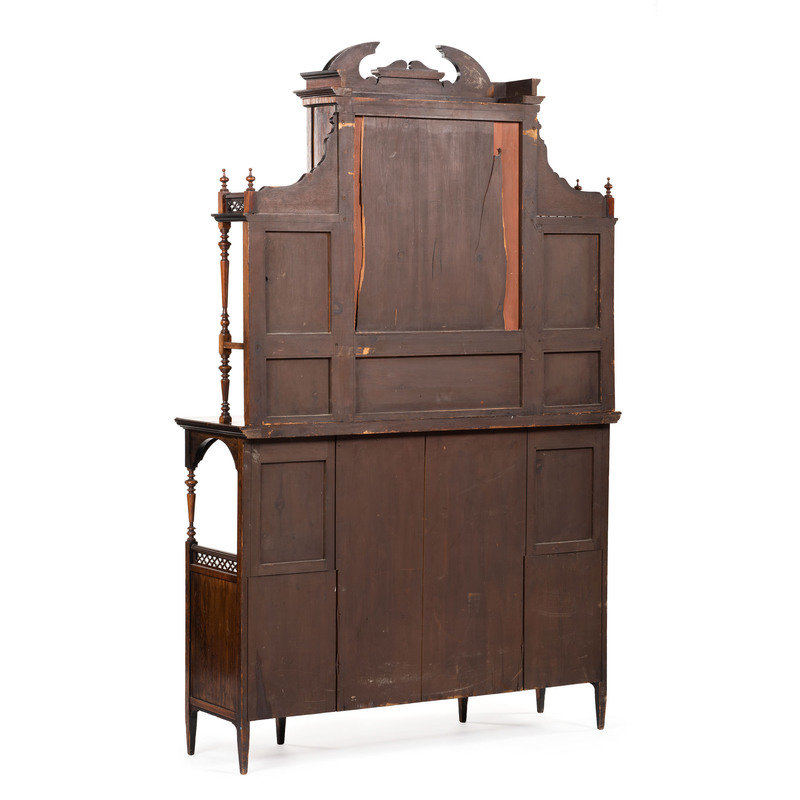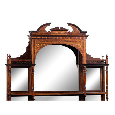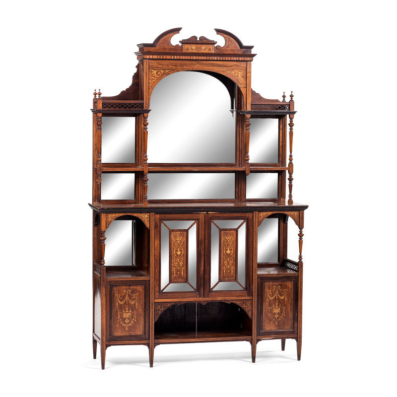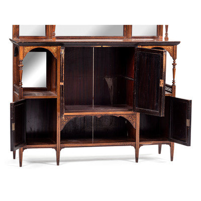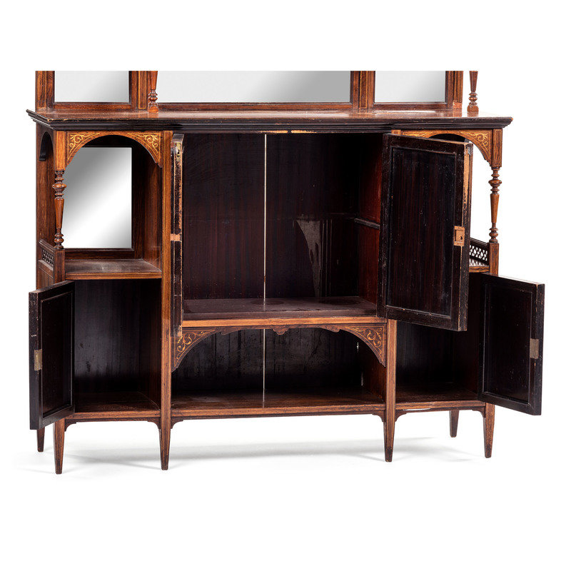 An Aesthetic Movement Mirrored and Inlaid Walnut Step-Back Cabinet