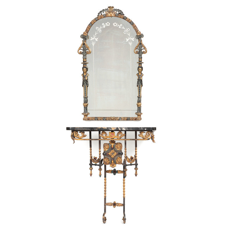 An Iron and Marble Console Table and Mirror, Attributed to Oscar Bach