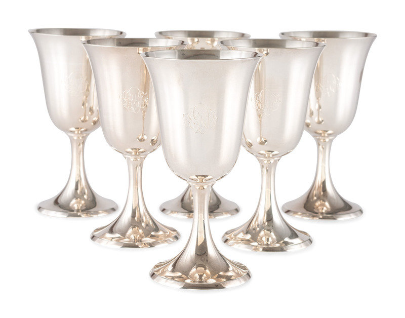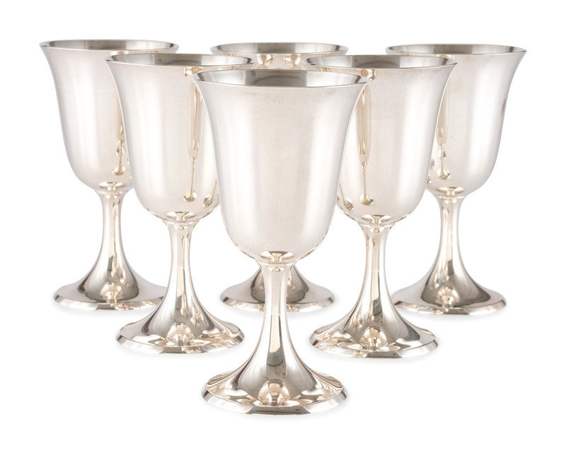 Six Silver Water Goblets