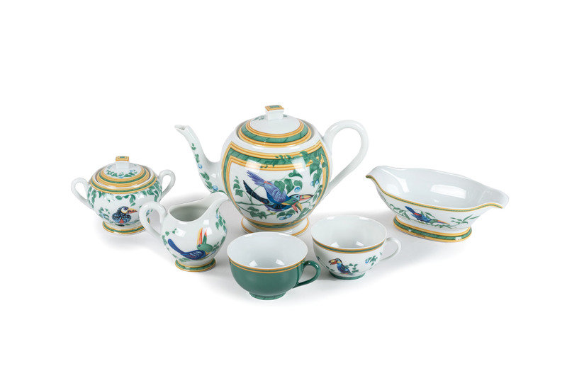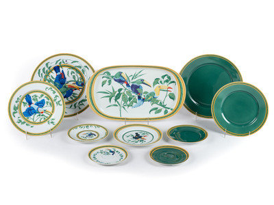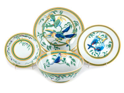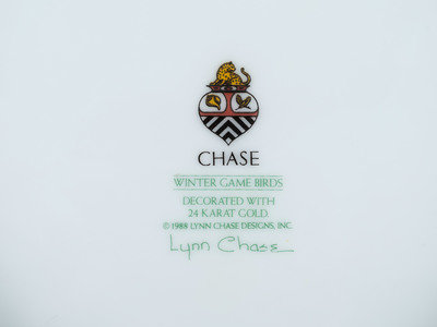 Lot also includes a Chase porcelain center bowl and gilt enameled spoon.