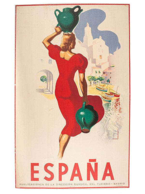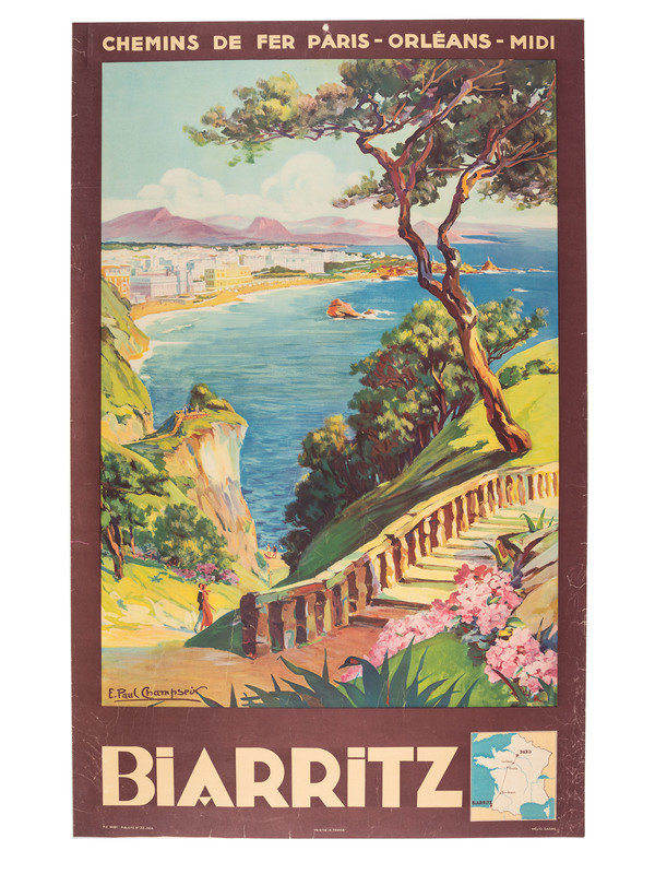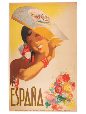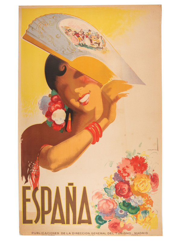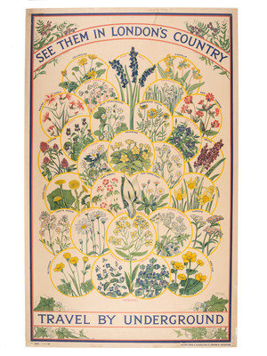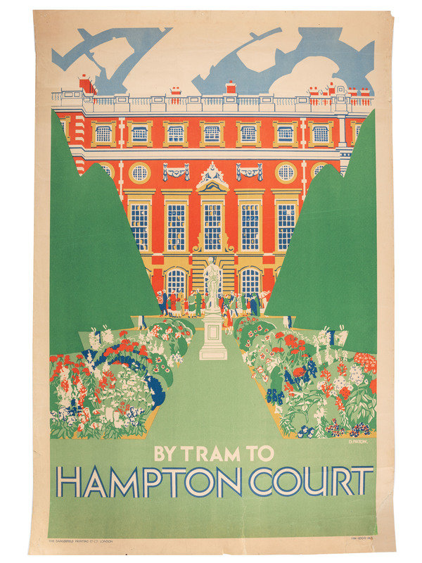 including two Espana posters, Biarritz, and Mont-Revard, a Shop By Underground poster, From 430 to 1, By Tram to Hampton Court, and See Them in London's Country.