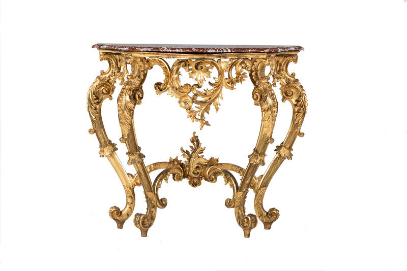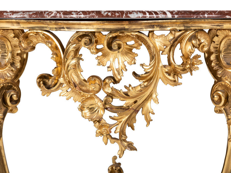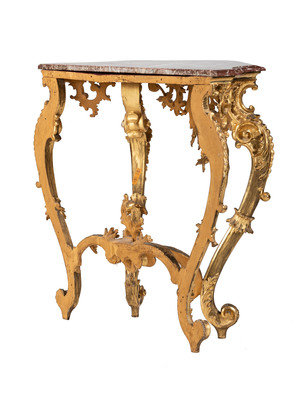 An Italian Giltwood Marble-Top Console Table