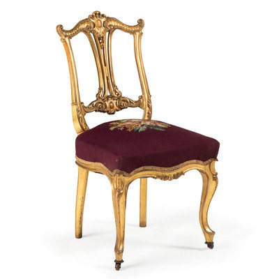 A French Louis XV Style Gilt Side Chair with Needlepoint Seat