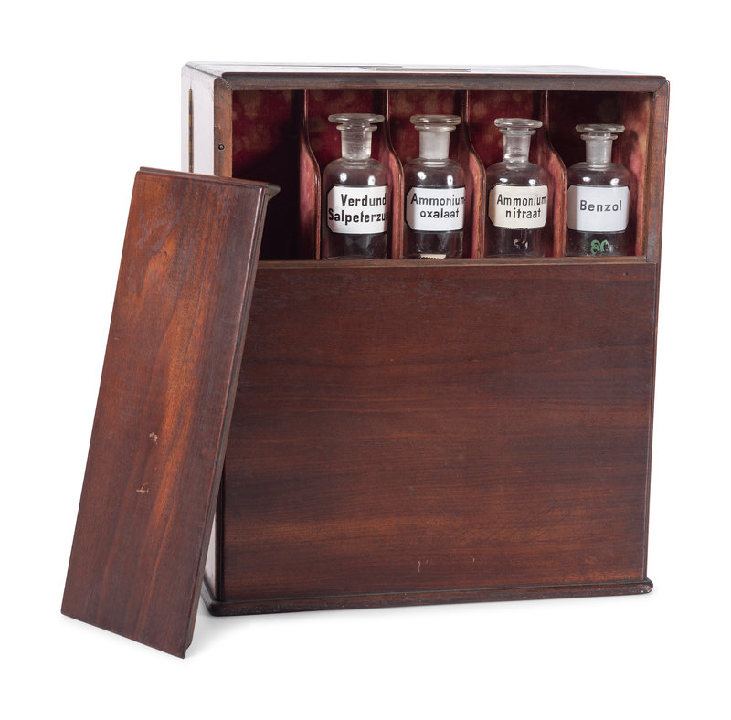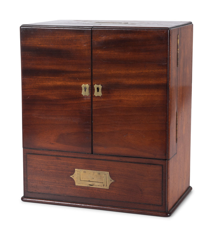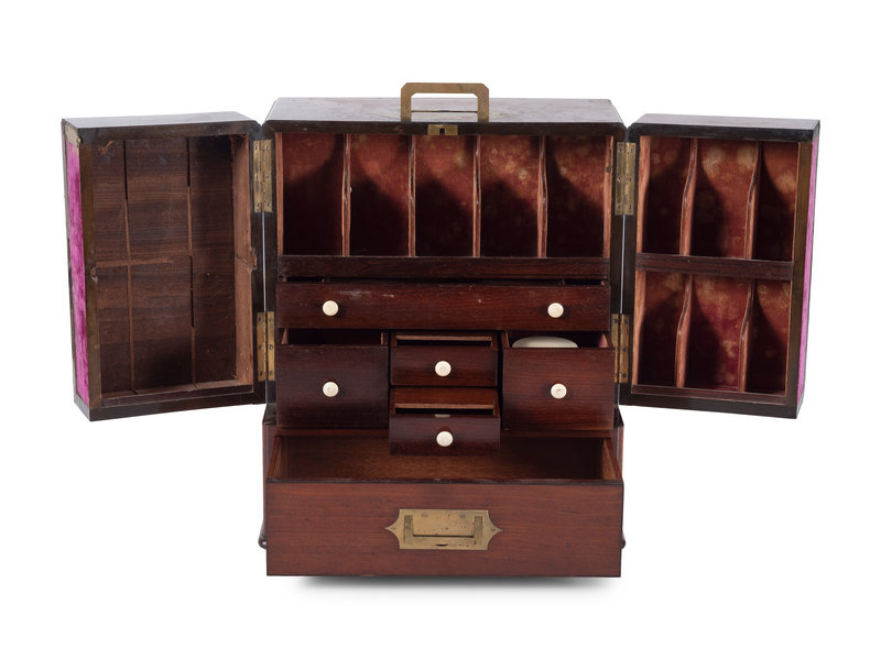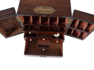 A Regency Brass Mounted Mahogany Traveling Apothecary Chest