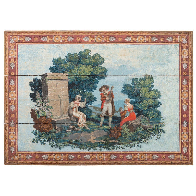 A Zuber & Cie Hand-Painted Scenic Wallpaper Panel Mounted on Wood