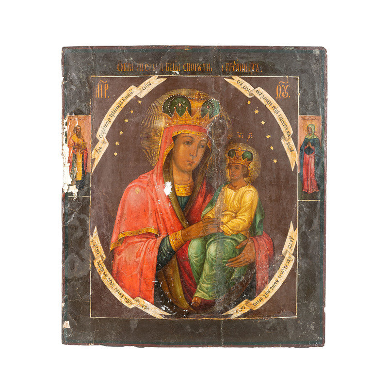 A Painted Wooden Icon of Madonna and Child with Saints