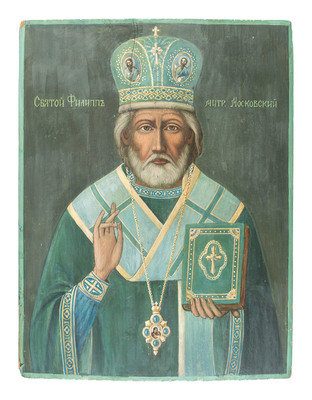 A Russian Painted Icon on Wood, Saint Philip of Moscow