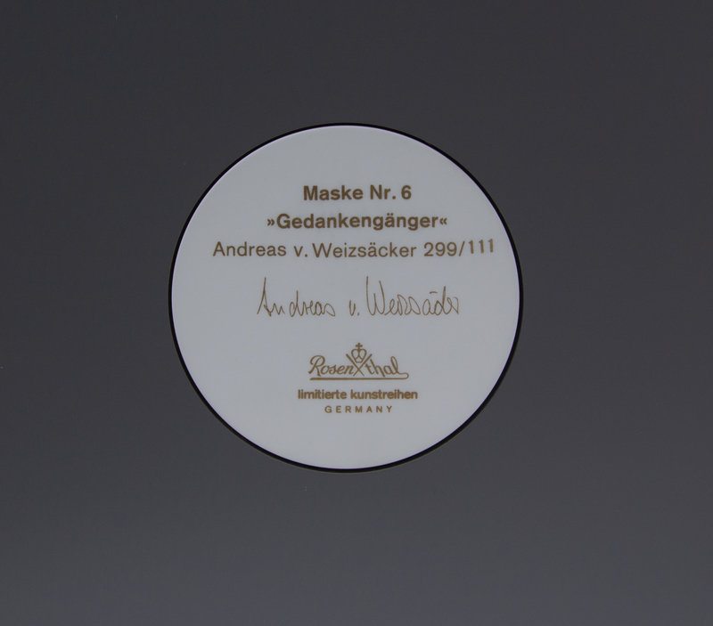 polychrome painted porcelain, mounted on a light-grey laquered wooden plate.