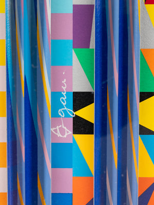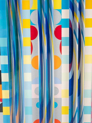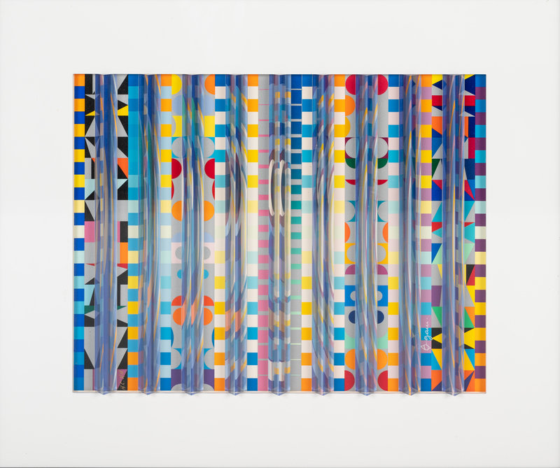 , 2007color serigraph on a polymer surface with 9 hand-cut hand-polished prisms affixed to the surface in relief