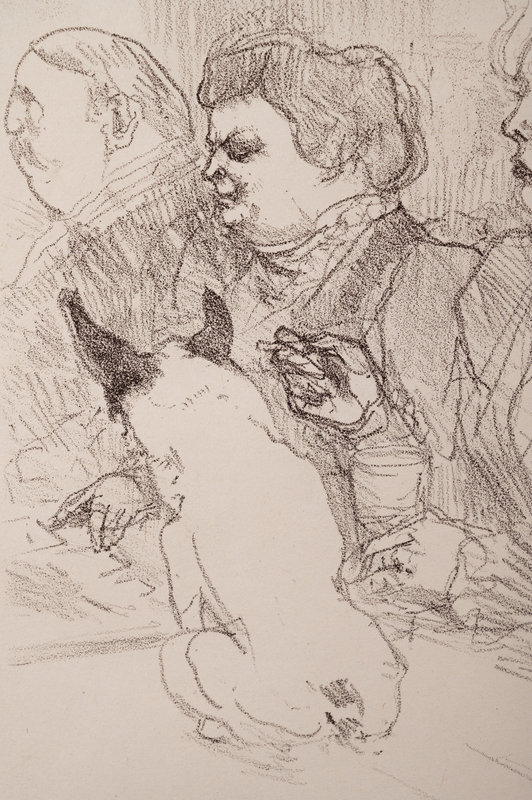 crayon lithograph in violet-black with scraping on stone, on grayish ivory China paper