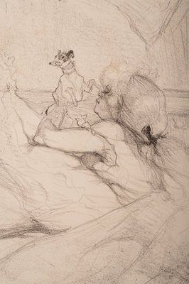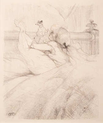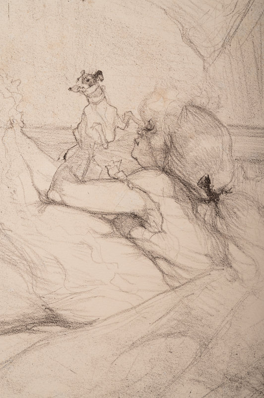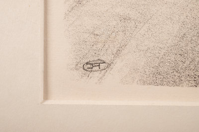 crayon lithograph in black, with scraping on stone, on cream wove paper with laid textures