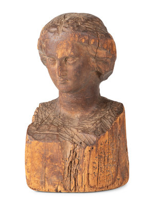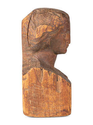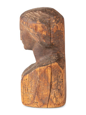A Folk Art Carved Wood Female Head