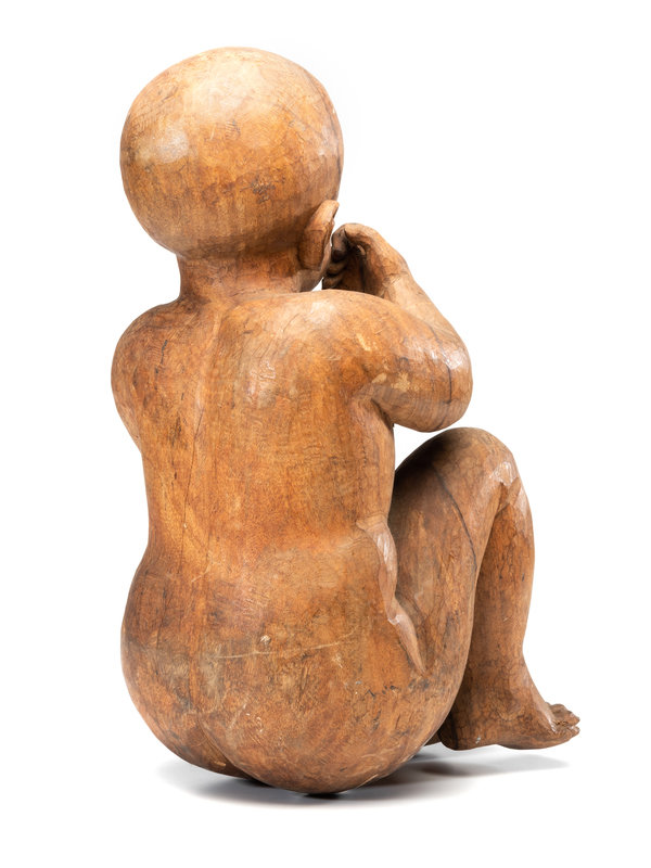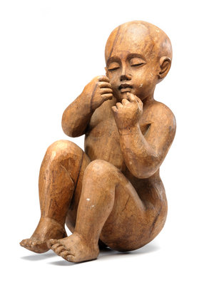 A Carved Wooden Sculpture of a Sleeping Baby