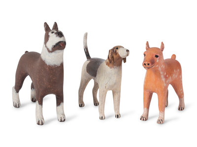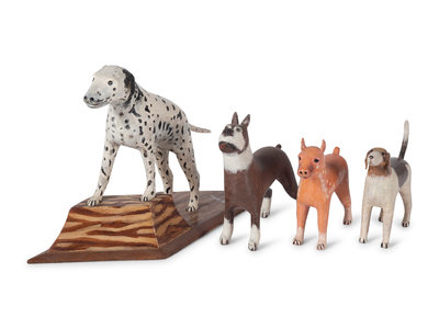 Four Folk Art Painted Wood Dog Figures
