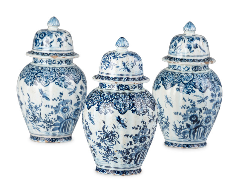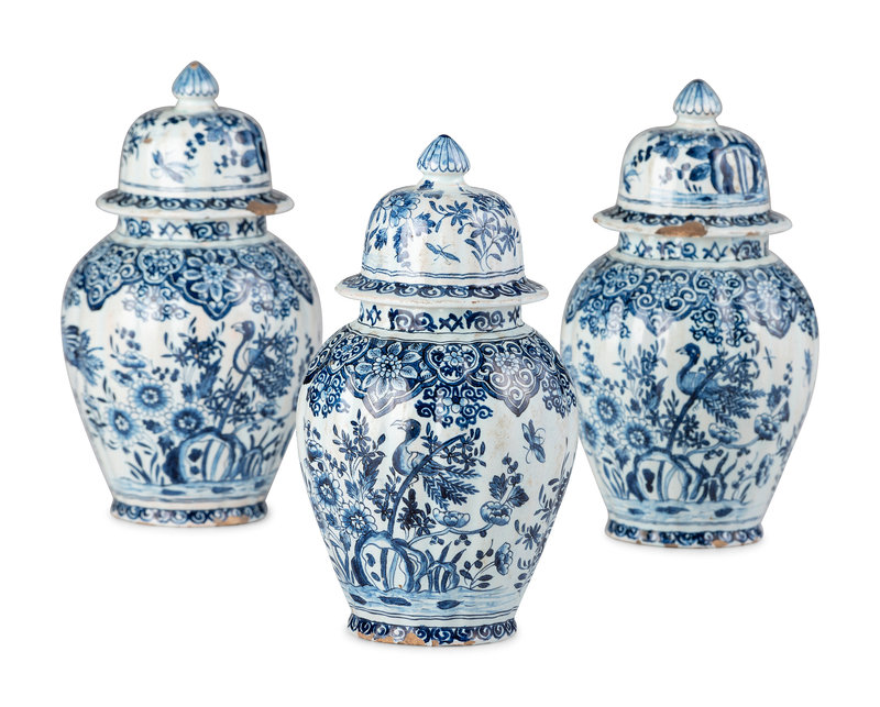 A Three Piece Delftware Garniture