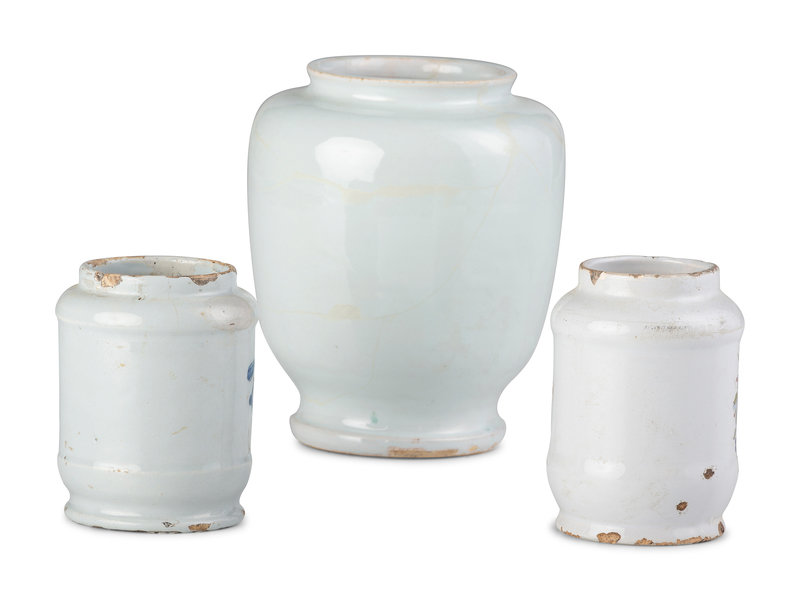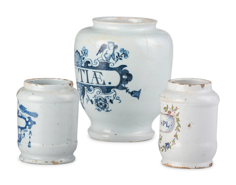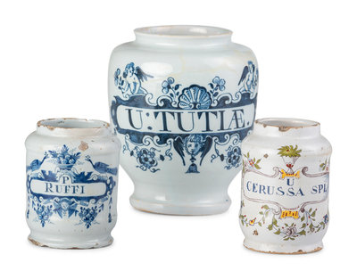Three Delft Apothecary Jars