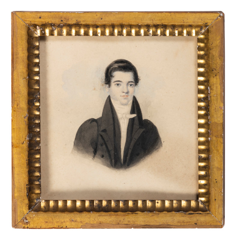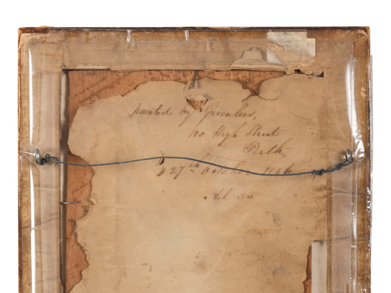 one housed in a gilt frame, the other in a maple frame with handwritten inscription to verso painted by Greenlees / 120 High Street / Perth / 24th October 1846 / tel. 35.