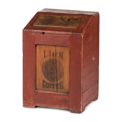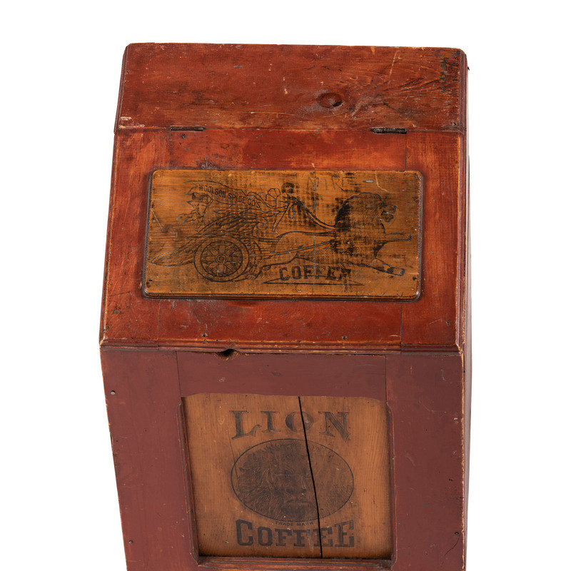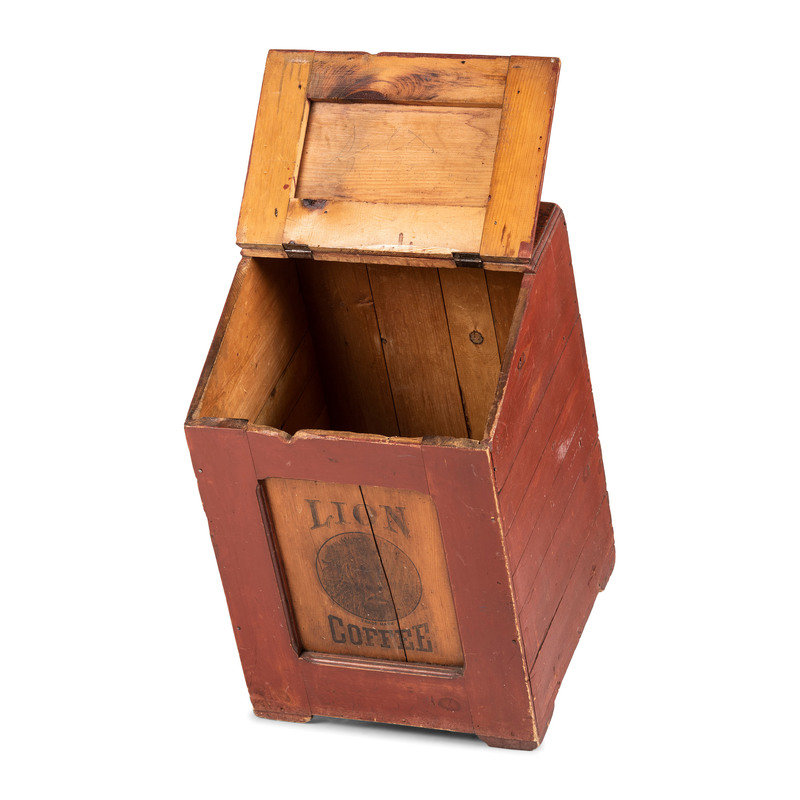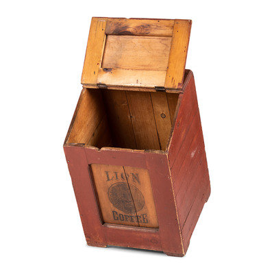A Lion Coffee Painted Store Bin