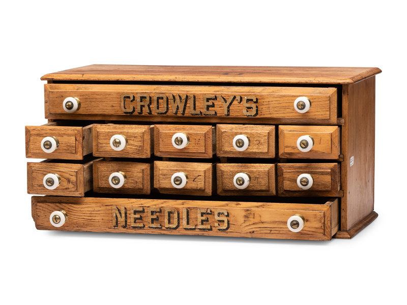 A Twelve Drawer Crowley's Needles Advertising Cabinet