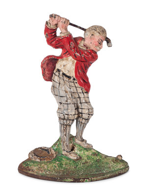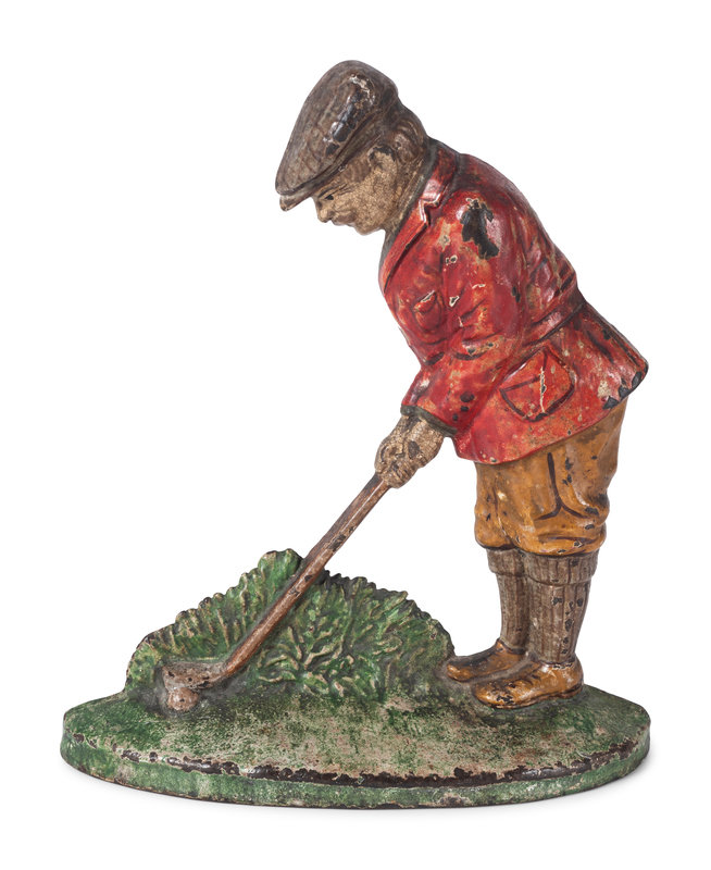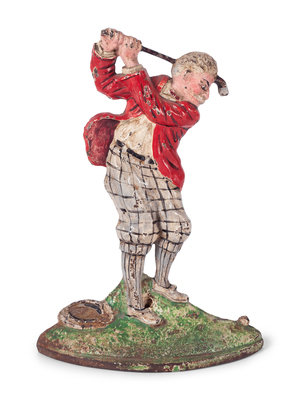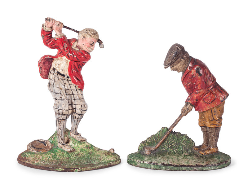 Two Painted Cast Iron 'Golfer' Door Stops