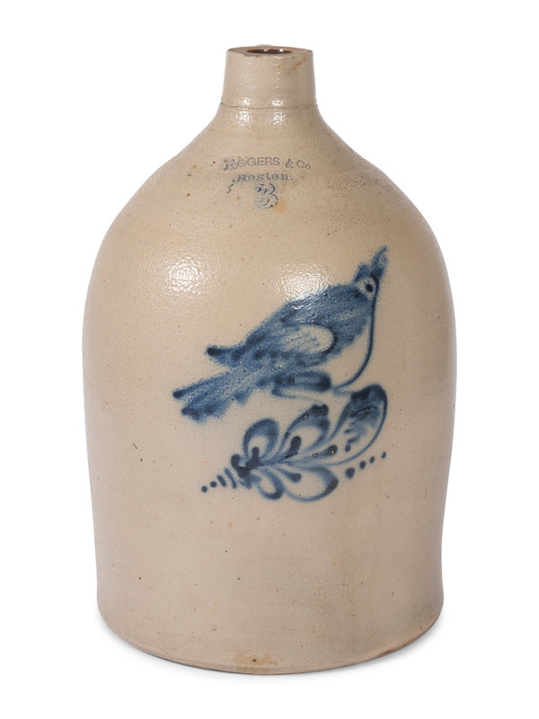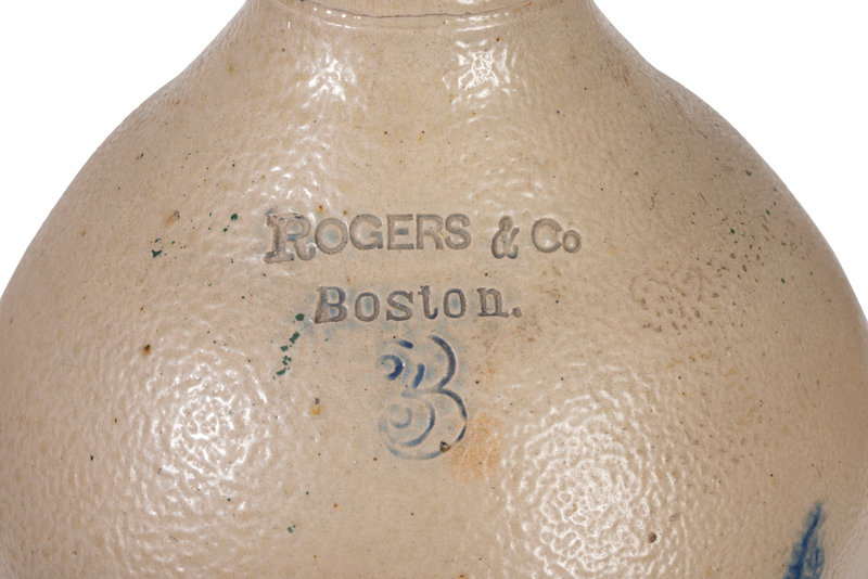 A Rogers & Co. Cobalt-Decorated Three-Gallon Stoneware Jug