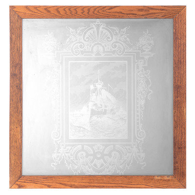 A Frosted and Etched Window Depicting the USS Maine