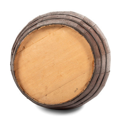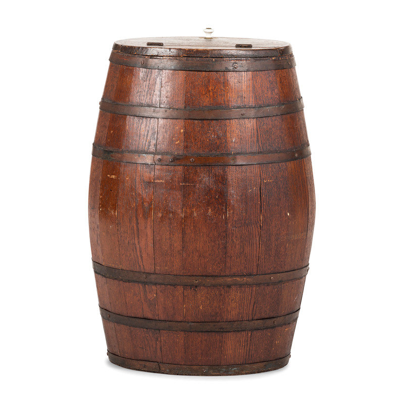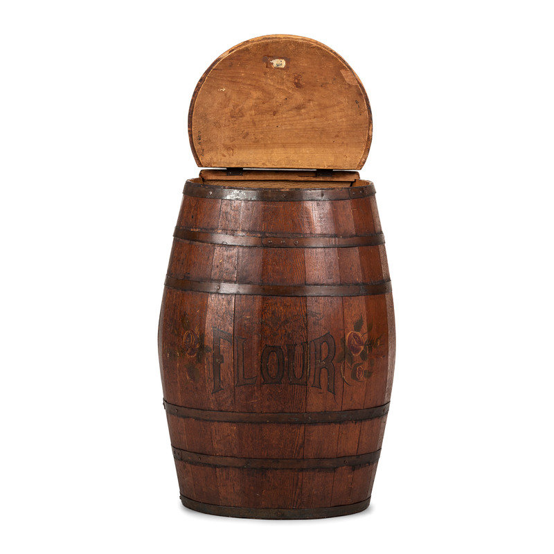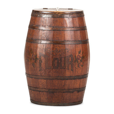 A Large Stenciled and Grain Painted Wood Flour Barrel