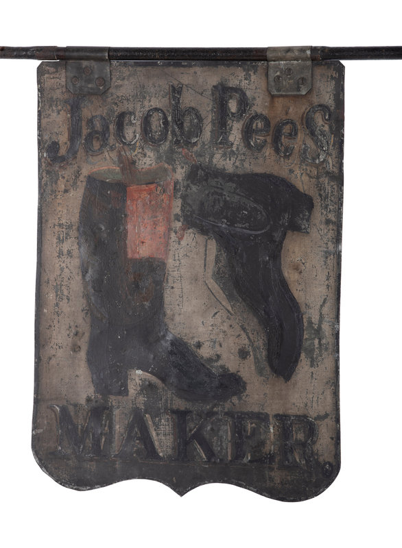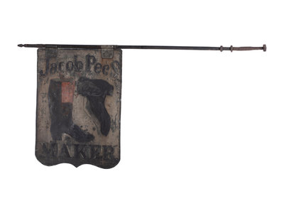 A Painted Metal Jacob Pees Shoe Maker Double-Sided Sign