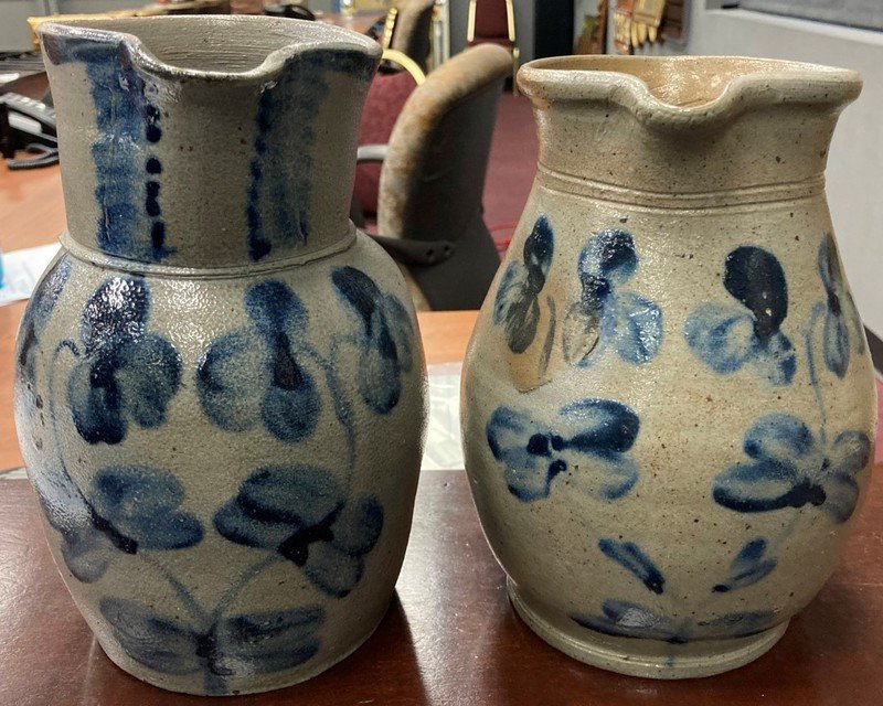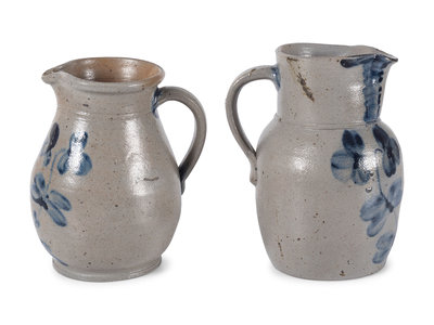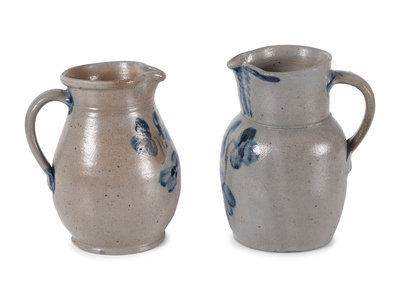 Two Cobalt Decorated Stoneware Pitchers