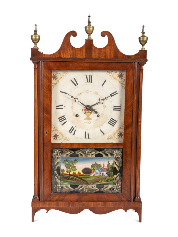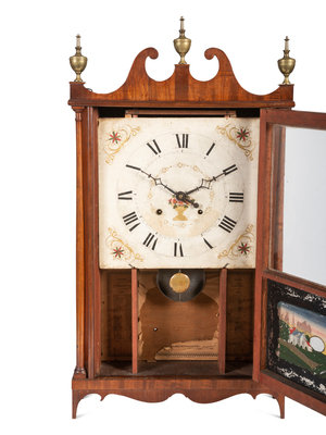 A Federal Pillar and Scroll Mahogany Mantel Clock