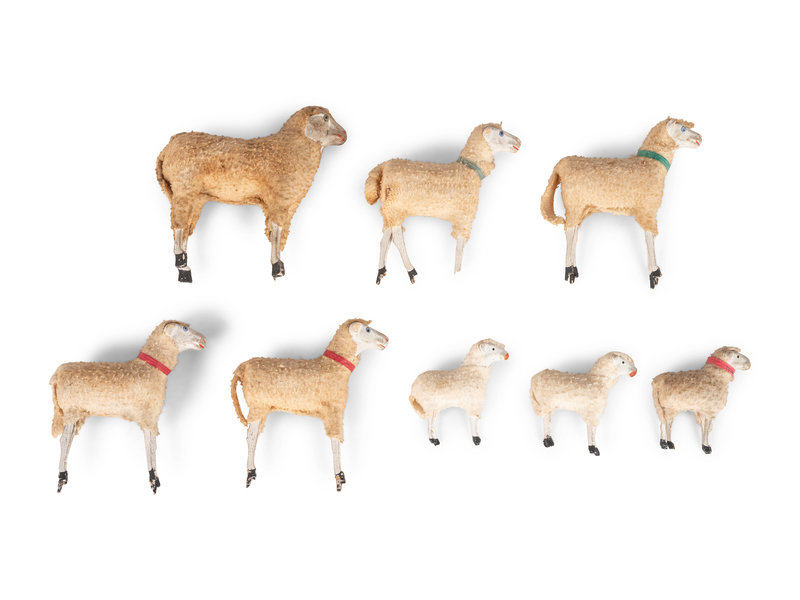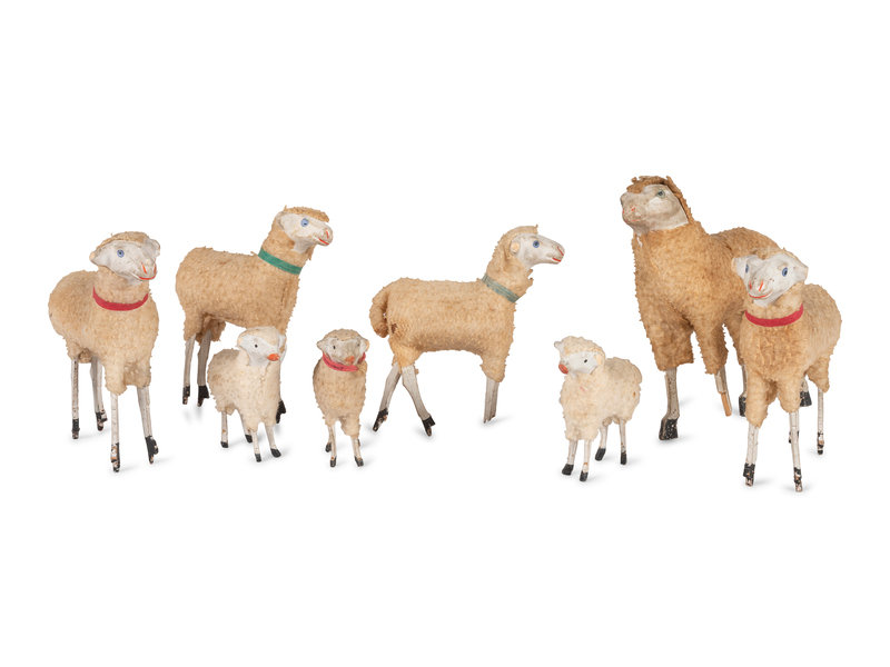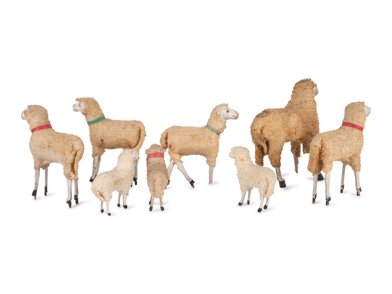 Eight German Wooly Sheep Toys with Stick Legs