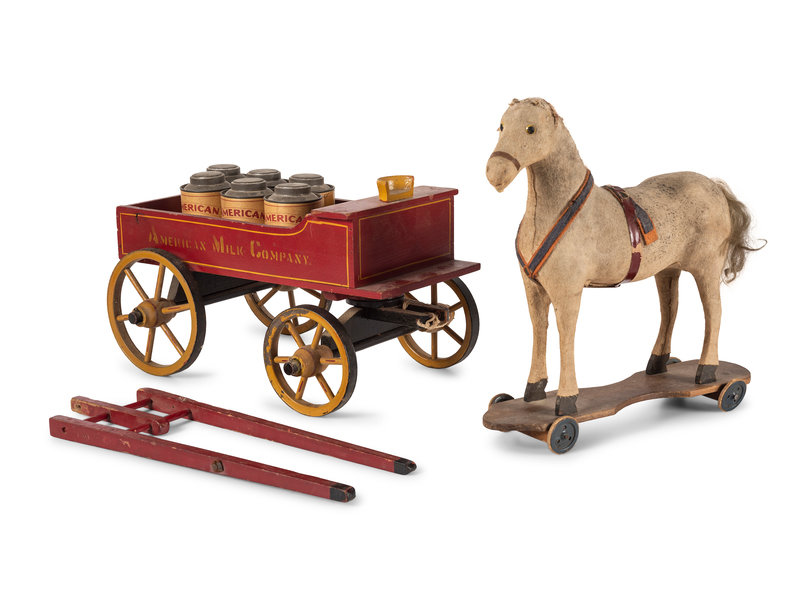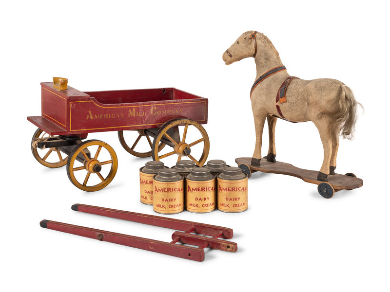 An American Milk Company Horse and Wagon Pull Toy