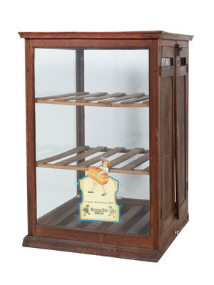 A Wooden Frame Butternut Bread Bakery Countertop Display Case