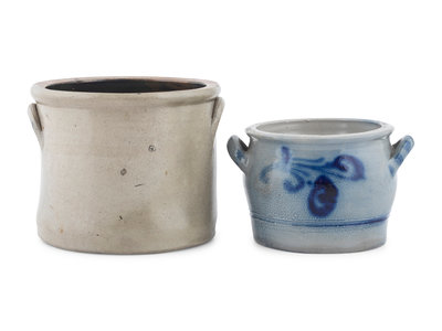 A Floral Decorated Stoneware Crock and Handled Jar