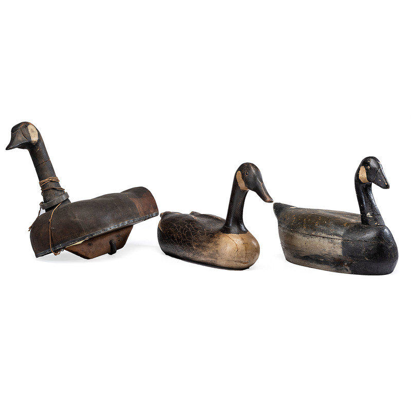 Three Painted Wood Geese Decoys