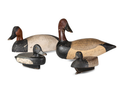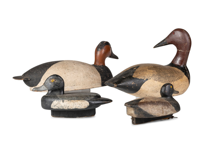 Four Wooden Canvasback Duck Decoys