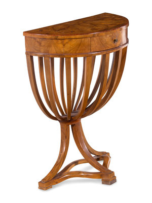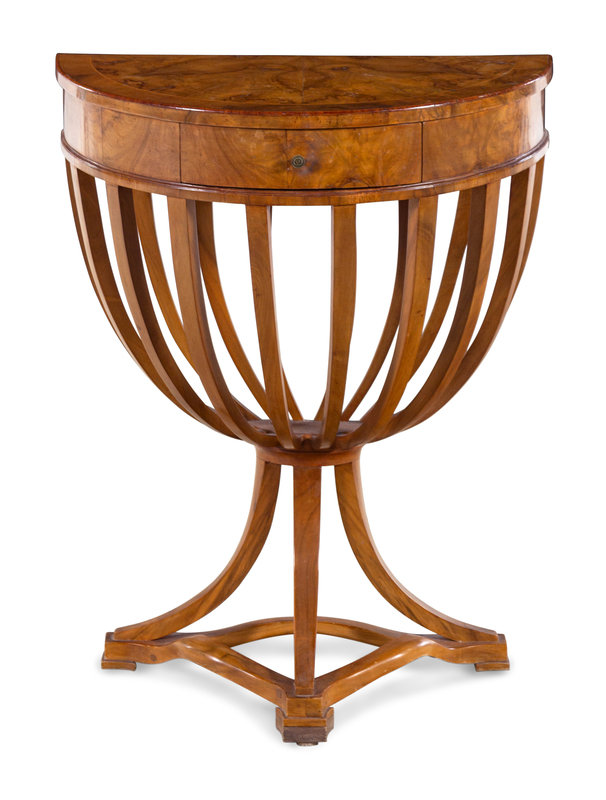An Italian Biedermeier Style Burlwood Demilune Console Table