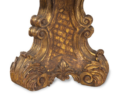 An Italian Baroque Style Carved Giltwood Marble-Top Pedestal Table
