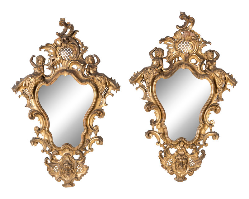A Pair of Italian Giltwood and Etched Glass Mirrors