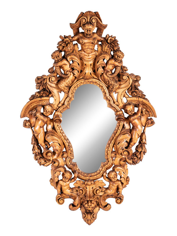 A Large Italian Carved Walnut Mirror in the Manner of Valentino Panciera Besarel