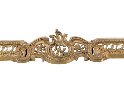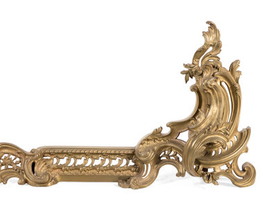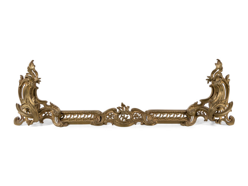 Height of chenets 16 1/2 inches; width of fender 29 inches.