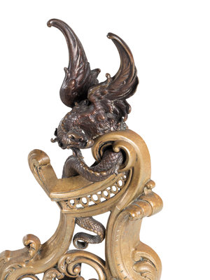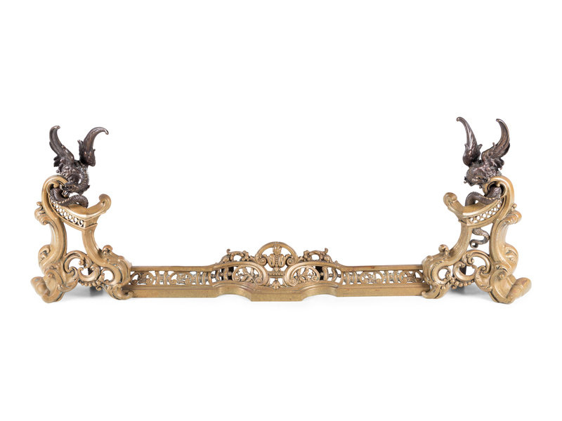 A Rococo Style Gilt Bronze Fire Guard with Dragons