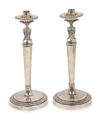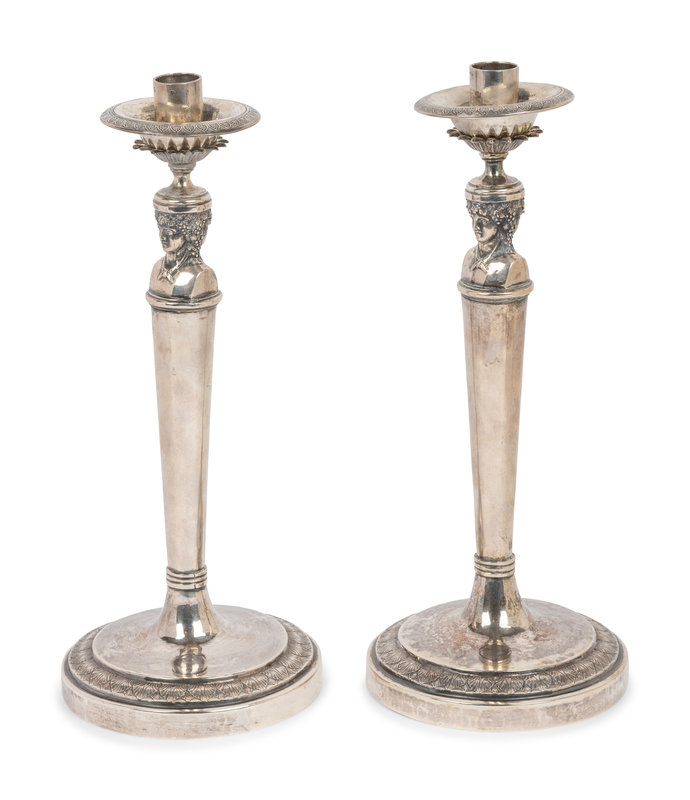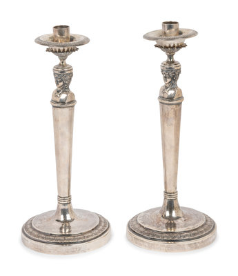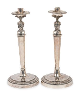 A Pair of Italian Silver Candlesticks