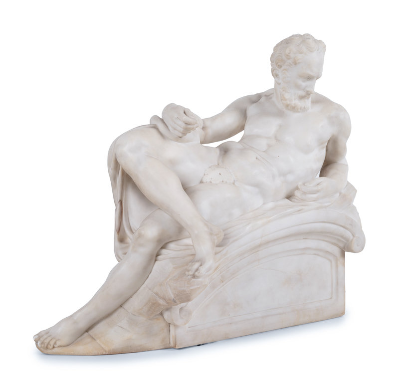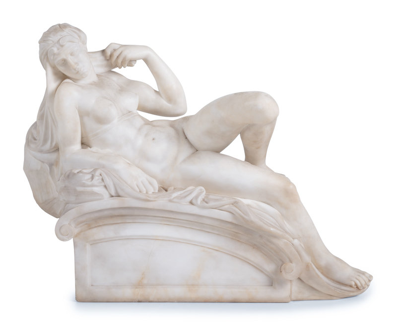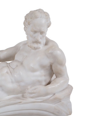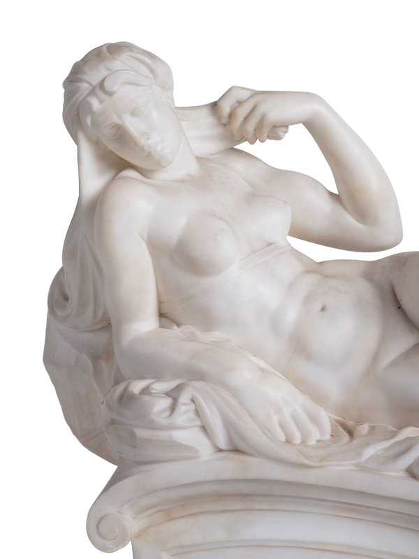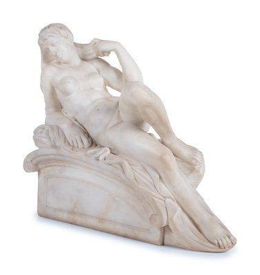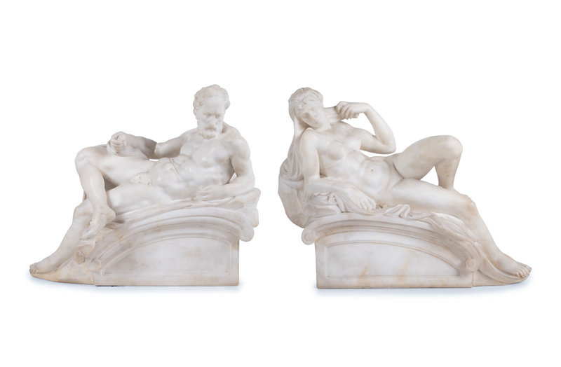 A Pair of Carved Alabaster Figures of Dusk and Dawn, After Michelangelo from The Tomb of Lorenzo de Medici