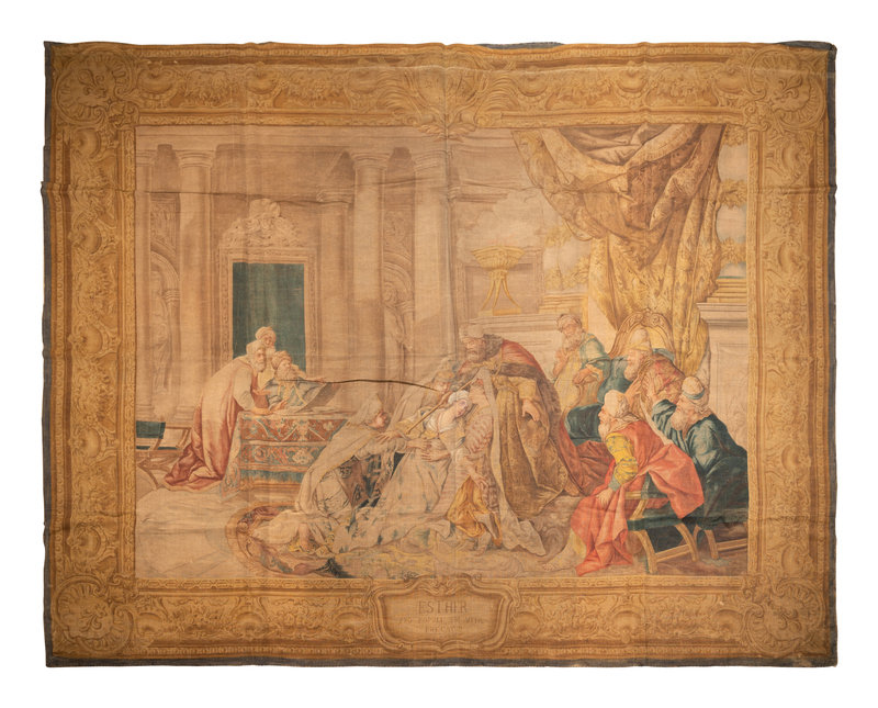 An Italian Painted Tapestry Depicting Esther Supplicating for the Lives of Her People