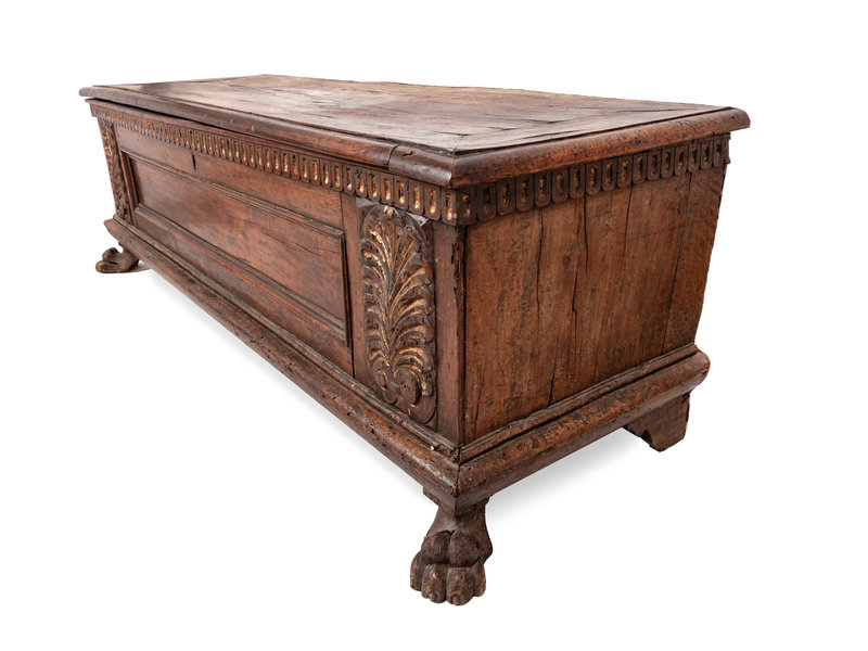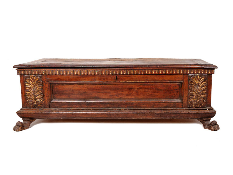A Spanish Parcel Gilt Carved Walnut Chest