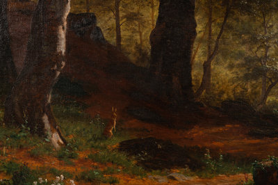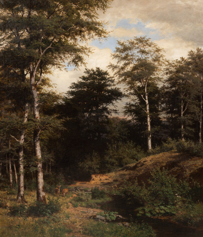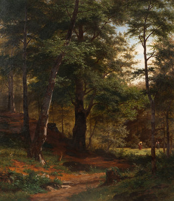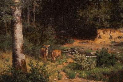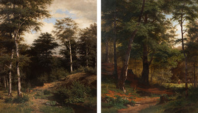 Deer in a Forest Clearing, 1867 and A Forest Clearing with Figures, 1867 (two works)